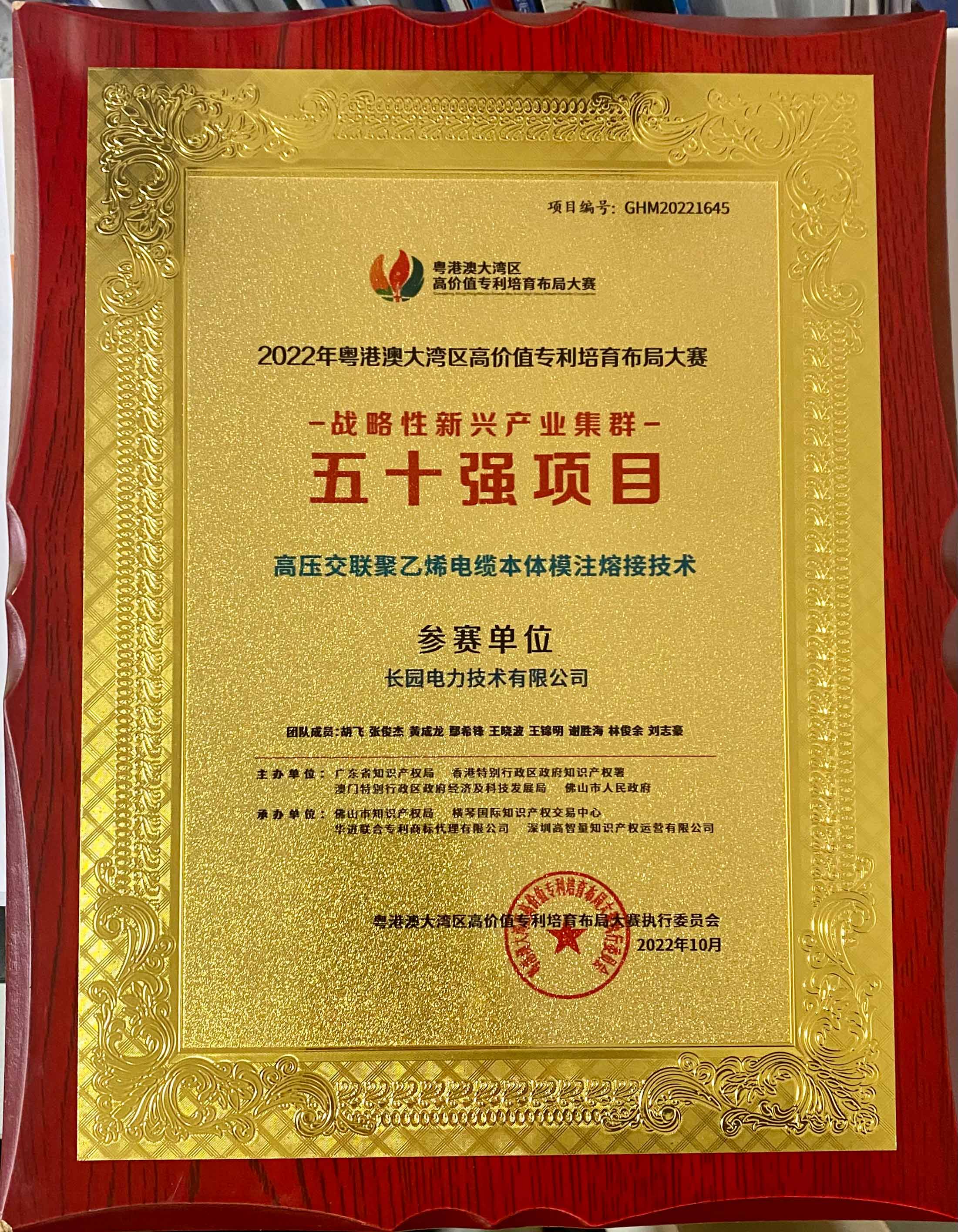 银河集团(galaxy)电力荣获“粤港澳大湾区高价值专利培育布局大赛”多项奖项
