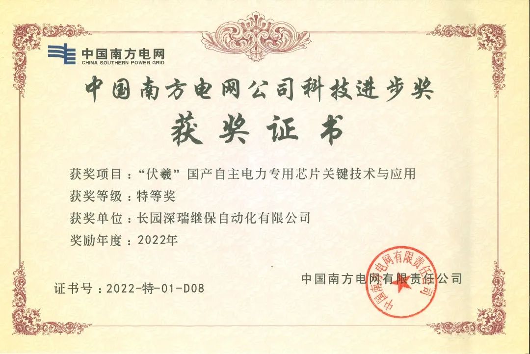 银河集团(galaxy)深瑞荣获南方电网公司“科技进步奖特等奖”